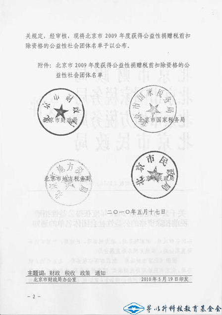 北京市2009年度获得公益性捐赠税前扣除资格的公益性社会团体名单的通知